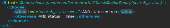 <if test="@[ParameterNullCheck 경로]@[isNotEmpty or isEmpty]([검사할 파라미터 명])"></if>